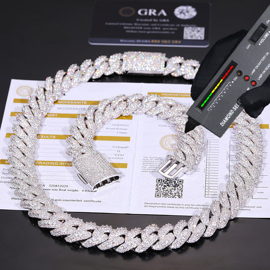 18mm Solid Silver Moissanite Diamond Miami Cuban Link Chain