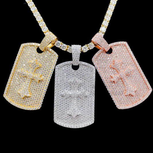 Moissanite Diamond Cross Dog Tag Pendant