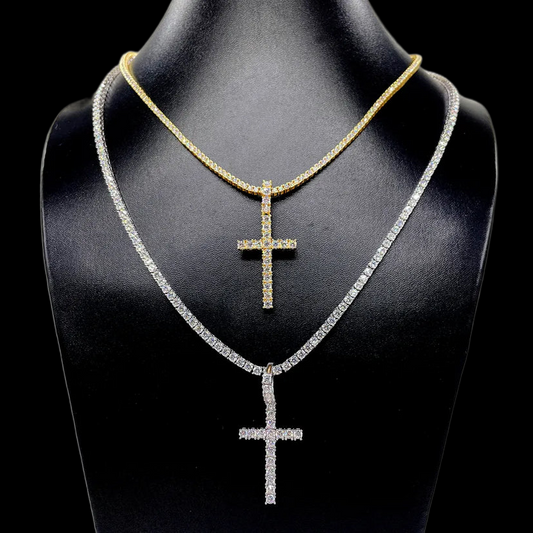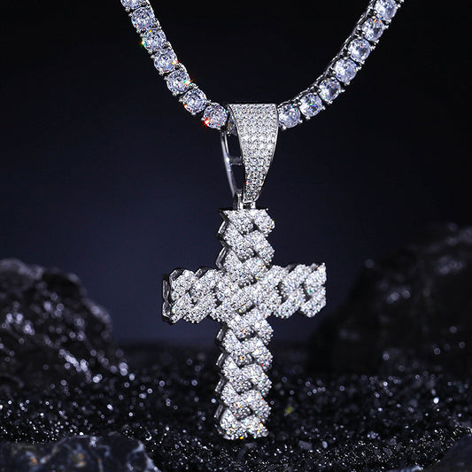 Moissanite Cuban Link Cross Pendant