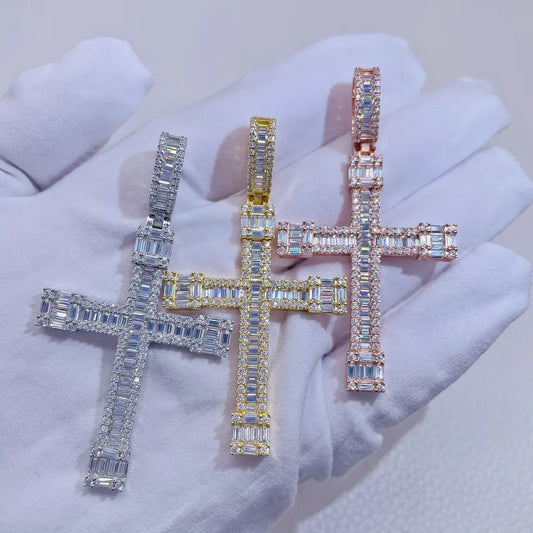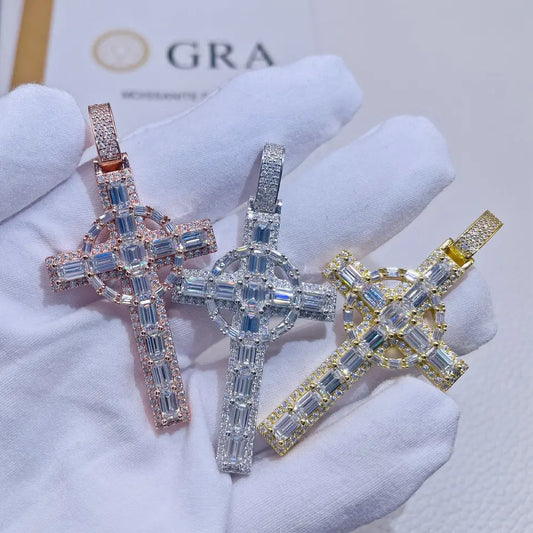 Moissanite Baguette Diamond Cross Pendant