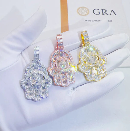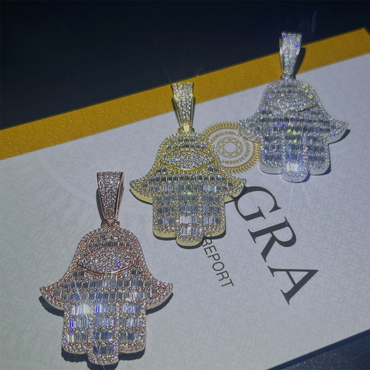 Moissanite Baguette Diamond Hamsa Pendant