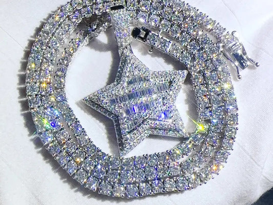 Moissanite Baguette Diamond Star Pendant